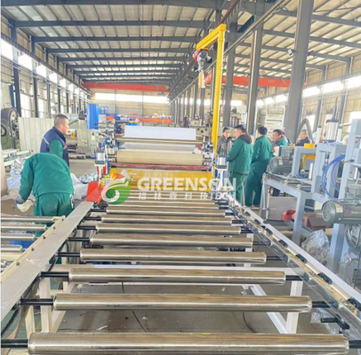 این دستگاه لمینیت تخته گچی، تخته های گچی روکش دار کاغذی (ضخامت 6 میلی متر تا 8 میلی متر) را با اعمال چسب مخصوص در هر دو طرف، سپس لمینیت با فیلم PVC و فویل PET پردازش می کند. تخته های تمام شده به اندازه های استاندارد (60 × 60 میلی متر) برای استفاده به عنوان سقف کاذب در کاربردهای دکوراسیون داخلی برش داده می شوند.
