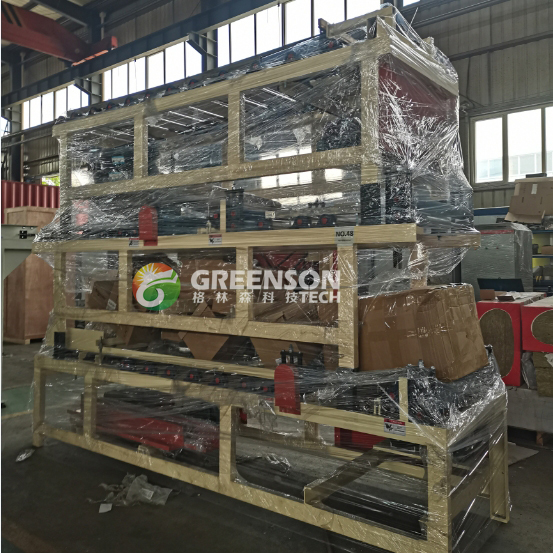 دستگاه لمینت تخته گچیتخته گچی کاغذی با ضخامت 6 میلی متر تا 8 میلی متر را با پخش چسب مخصوص در هر دو طرف پردازش می کند، سپس فیلم PVC و فویل PET را لمینت می کند. پس از لمینت، تخته به اندازه های استاندارد 60 x 60 میلی متر بریده می شود تا به عنوان سقف کاذب در دکوراسیون داخلی استفاده شود.