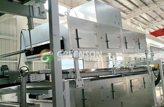 This production line is engineered for the continuous manufacturing of rock wool (mineral wool) sandwich panels, primarily utilized in industrial construction requiring stringent fire-safety ratings. The system integrates decoiling, cold-roll forming, rock wool strip flipping, automated adhesive application, and high-temperature curing to ensure structural integrity and thermal consistency across large-scale production runs.